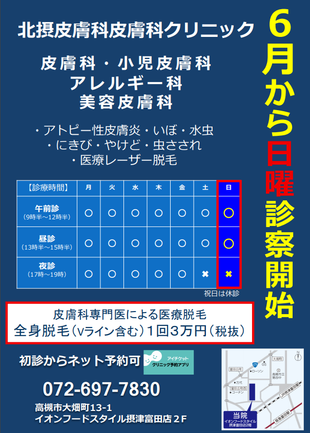より多くのみなさまにご利用いただきやすいように2019年6月より日曜診察を開始いたします。